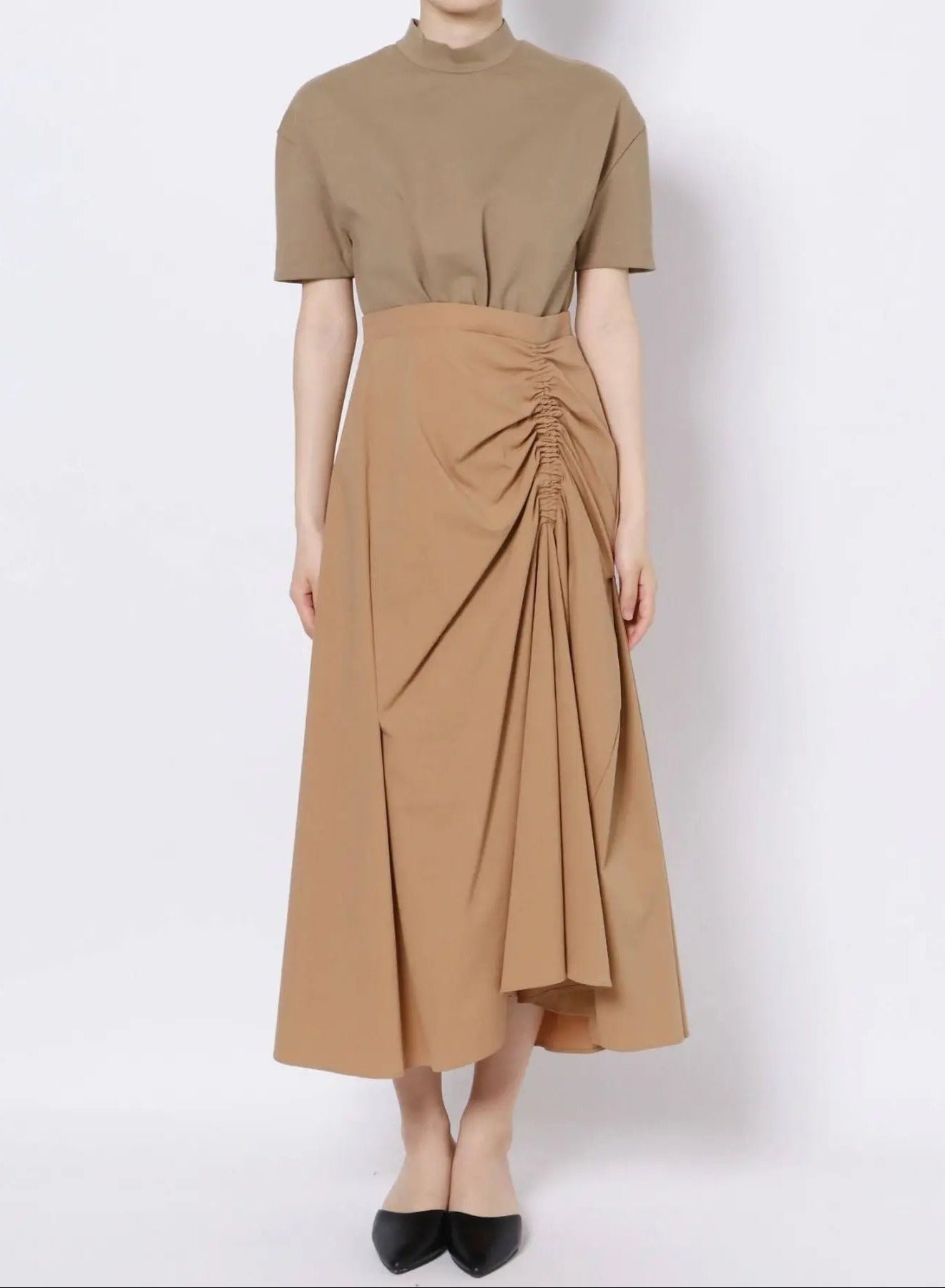 Asymetryczny plisowany detal z przodu